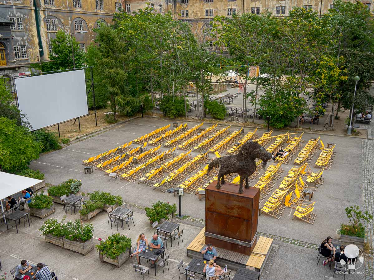 Kasárna Karlín è una delle anime più vive del quartiere. Nato tra le mura di una ex caserma militare del XIX secolo, negli ultimi anni è diventato spazio sociale e culturale aperto a tutti. Dal 2017 il cortile e gli edifici riqualificati ospitano caffè, bar, cinema all’aperto, eventi, concerti e attività per famiglie, trasformando un luogo un tempo abbandonato in un punto di ritrovo soprattutto per i locali. Il Bazén Café, bar ricavato all’interno della piscina usata dai soldati, è forse lo spazio che più di altri fa capire davvero cosa significhi riqualificazione.